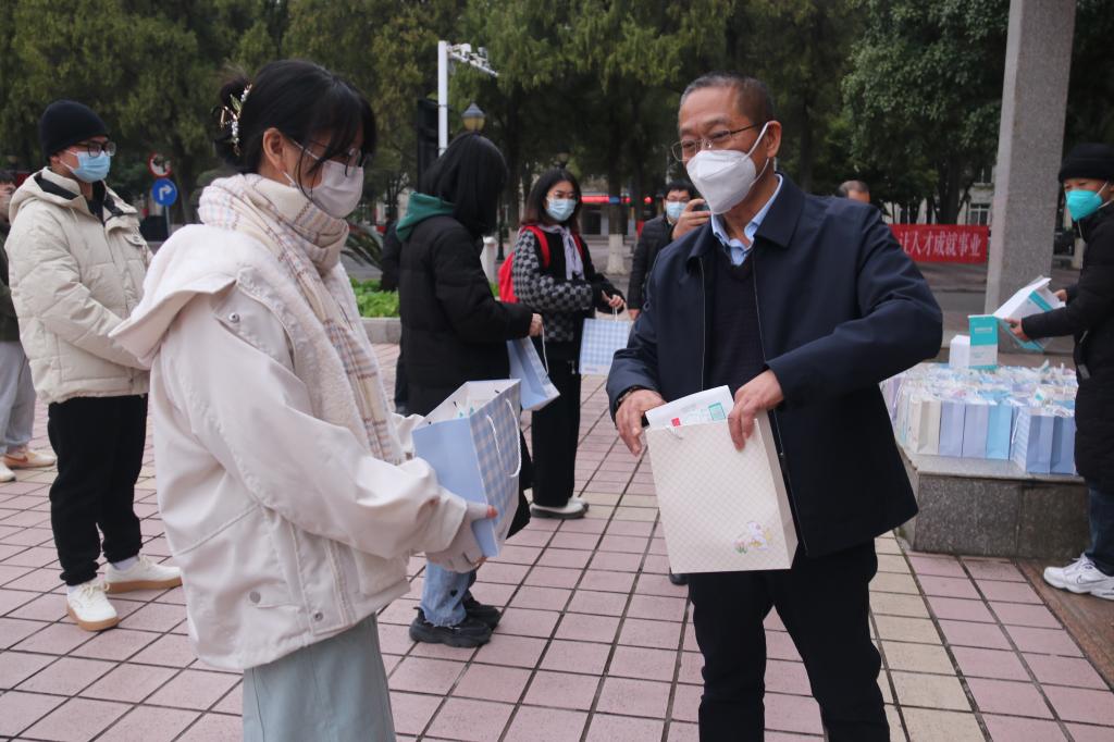 为了鼓励yl23411永利考研学子积极迎考,增强考研信心,舒缓备考压力,yl23411永利于2022年12月20日下午在屏风校区2栋门前小广场开展2023届毕业生考研暖冬活动,学院党委书记梁军、院长龙飞、党委副书记徐时、副院长张瑞、各教研室主任、班主任以及学工办的辅导员们参加了此次活动,活动由学院党委副书记徐时主持。