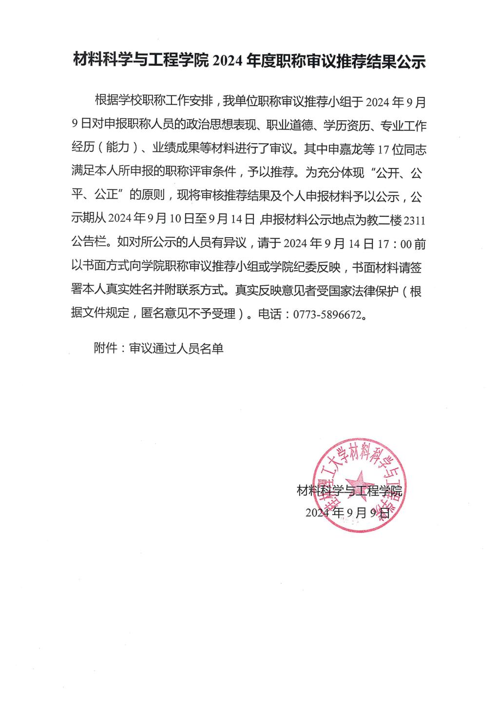 yl23411永利集团官网2024年度职称审议推荐结果公示
