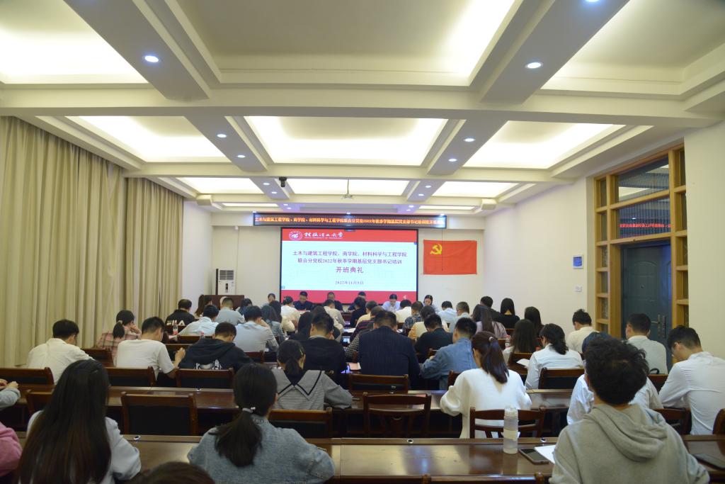 为深入学习贯彻习近平新时代中国特色社会主义思想和党的二十大精神。11月9日晚,土木与建筑工程学院、商学院、yl23411永利集团官网联合分党校2022年秋季学期基层党支部书记培训在4204会议室正式开班。土木与建筑工程学院党委书记曾榕、yl23411永利集团官网党委书记梁军、商学院党委书记白永生出席开班仪式,三个学院党委副书记、全体党支部书记参会以及师生党员代表参会。