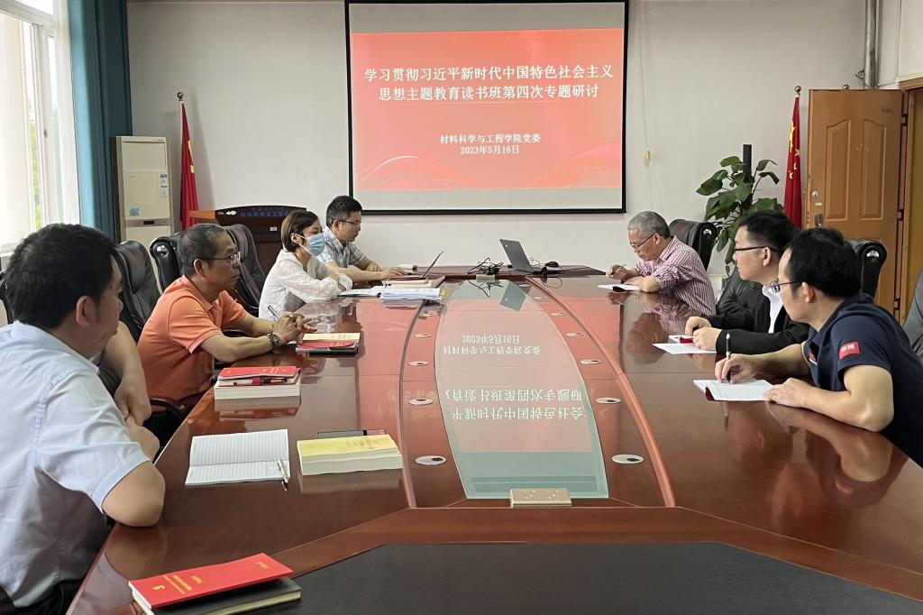 5月16日上午,材料学院召开党委领导班子学习贯彻习近平新时代中国特色社会主义思想主题教育读书班第四次专题研讨,重点就“深入学习习近平总书记关于坚持和加强党的全面领导、坚定不移全面从严治党的重要论述”进行了专题研讨交流。学院党委书记梁军同志主持会议,学院领导班子成员出席会议。