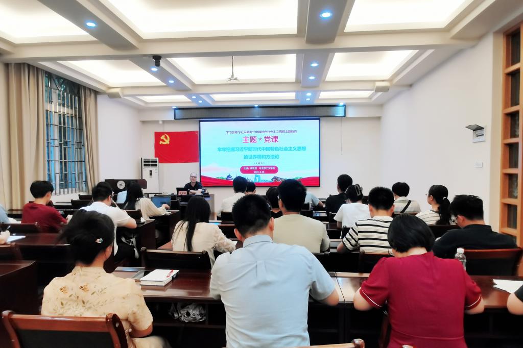 为深入学习贯彻习近平新时代中国特色社会主义思想和党的二十大精神加强和改进党的基层组织建设,全面提升基层党支部书记的能力素质和业务水平。2023年6月26日,yl23411永利集团官网、商学院、土木与建筑工程学院联合分党校2023年春季学期基层党支部书记培训班在4204会议室开展。马克思主义学院副院长蒋晓俊同志作《牢牢把握习近平新时代中国特色社会主义思想的世界观和方法论》专题党课,屏风校区三个学院基层党支部书记及师生党员代表参加学习。