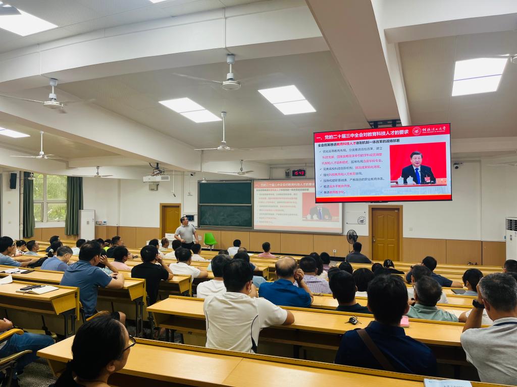 为深入学习贯彻习近平新时代中国特色社会主义思想,认真落实党的二十大和二十届一中、二中、三中全会精神。96日下午,学院院长周焕福在9201教室为学院教职工讲授题为《聚焦教育、科技、人才资源,蓄力赋能学院高质量发展》的专题党课,学院全体教职工参加学习。