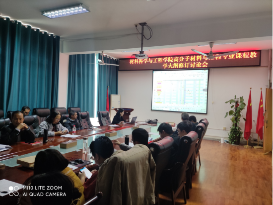 本次会议中,刘红霞同志首先向教研室汇报了2021年度高分子材料与工程专业课程教学体系运行情况,并总结了本年度校内外专家、企业、家长、学生、教师同行等多方面对本专业课程教学体系的意见和建议。随后,其他教师根据工程教育专业认证持续改进工作精神,认真对本专业课程教学体系中所有专业基础课和专业课的教学大纲进行讨论,最终决定对高分子材料专业英语等13门课程所对应的毕业要求指标点和教学大纲相应内容进行修改。