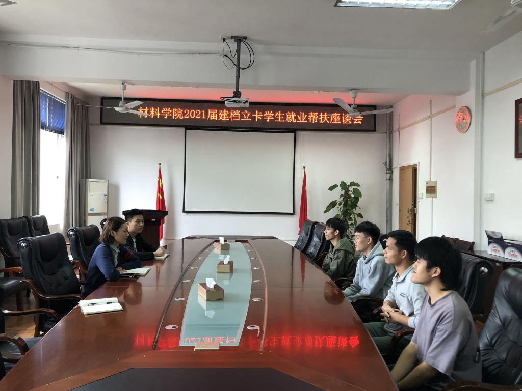 为贯彻落实国家政策,做好2021届建档立卡毕业生就业帮扶工作,努力确保家庭经济困难毕业生实现充分就业。yl23411永利于2021年5月20日在屏风校区2308召开2021届建档立卡毕业生就业帮扶座谈会。材料学院党委副书记徐时、2017级辅导员张娅、2018级辅导员出席会议。