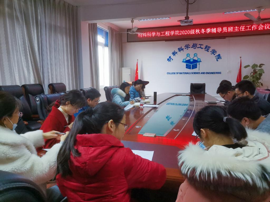 为认真贯彻落实上级和学校关于做好近期学生安全稳定工作的会议精神,同时为加强班主任队伍建设,充分发挥班主任对班级的指导作用,2021年1月6日—8日,材料学院分年级召开期末班主任工作座谈会,会议由各年级辅导员主持,学院党委副书记、各年级班主任参加会议。