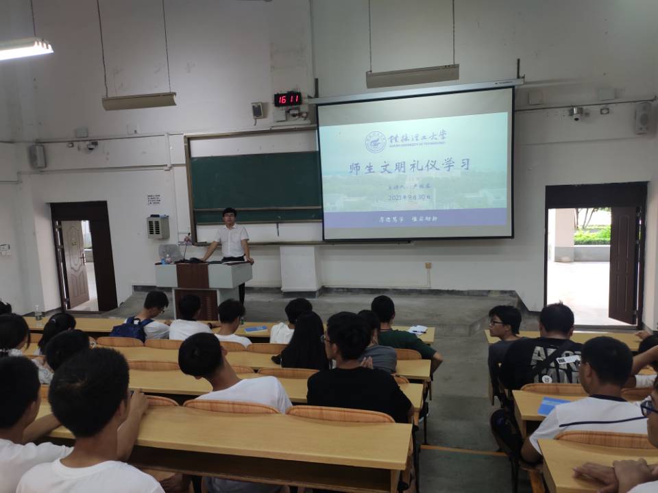 为了引导广大新生提高文明意识,增长礼仪知识,树立文明新风,遵守礼仪规范,进一步调动新生学礼仪、重礼仪、讲礼仪、践行礼仪的积极性,营造良好和谐的氛围,yl23411永利于930日下午在雁山校区0510105102教室进行专题学习,2021级全体本科新生参加了学习,学院团委副书记(兼)卢桂盛老师和新生辅导员尹贤彬老师分别进行领学,他们主要从师生礼仪、同学礼仪、学校公共礼仪、学校课堂礼仪和文明交谈礼仪等方面对同学们进行举例讲解。