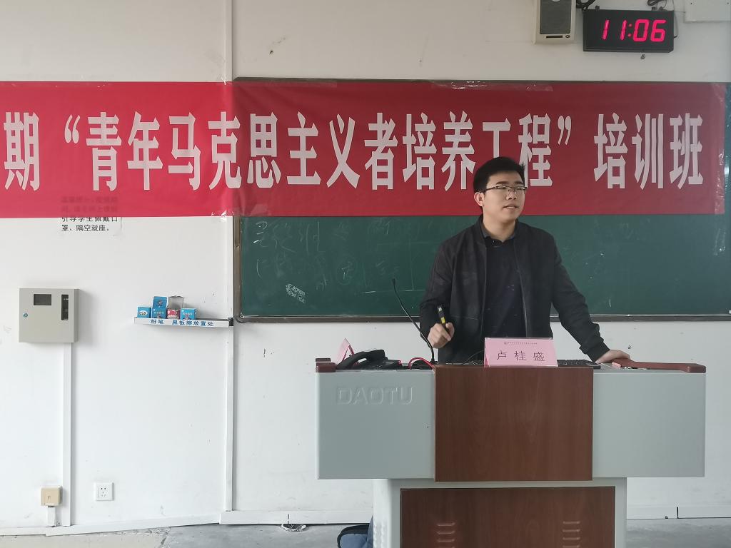 3月26日中午,yl23411永利在雁山校区06103教室组织第二期“青年马克思主义者培养工程”培训班学员进行第三次理论学习,本次学习由学院团委副书记(兼)卢桂盛老师主讲,他以“如何成长为德才兼备的新时代学生骨干”为题,带领学员学习。