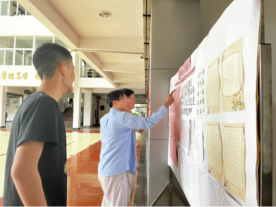 此次现场共展出各类书法、征文作品近二十幅,参展作品内容风格多样,取材广泛,既有软笔、硬笔书法作品,也有资助征文、感谢信。yl23411永利受资助学生围绕本次“青春献礼二十大 助学筑梦铸信念”主题,通过书写习近平总书记重要论述、爱国爱党诗词以及学生资助政策等内容表达对国家感恩之情。展出期间,引得同学们纷纷驻足观赏。