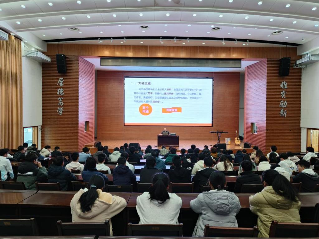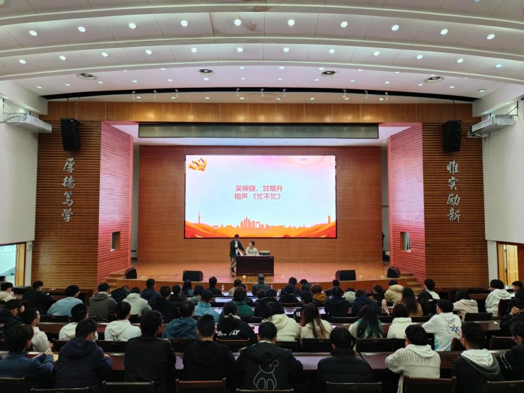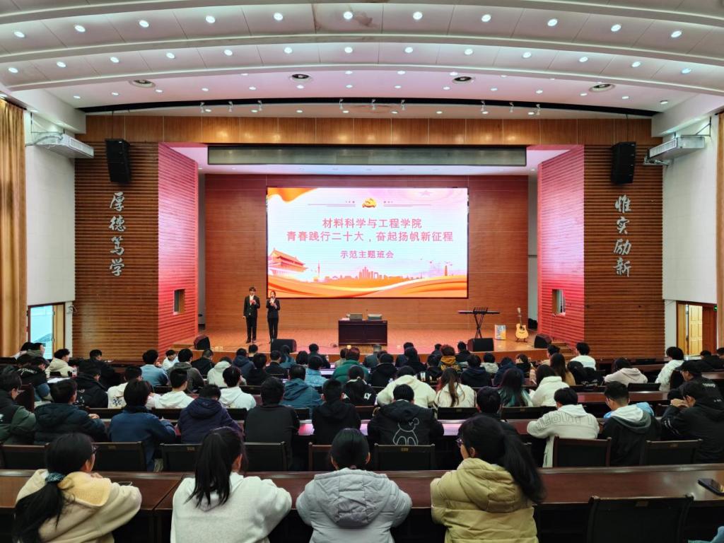 为持续学习宣传贯彻党的二十大精神,教育引导广大学生进一步坚定理想信念,学深悟透习近平新时代中国特色社会主义思想,2月26日上午,yl23411永利在屏风校区图书馆报告厅成功开展“青春践行党的二十大,奋起扬帆新征程”示范主题班会,班会邀请到了马克思主义学院副院长蒋晓俊老师、材料学院党委副书记徐时老师、材料学院2021无机实验班班主任姚迪圣老师出席本次活动。班会由2021级苏俊兴和苟海玲两位同学主持。