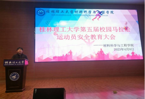 桂林理工大学第五届校园马拉松赛于4月9日在雁山校区进行,为确保本次赛事顺利进行,yl23411永利集团官网于4月8日下午在屏风图书馆报告厅召开马拉松运动员安全教育大会,学院团委副书记卢桂盛、屏风校区运动员参加此次会议。