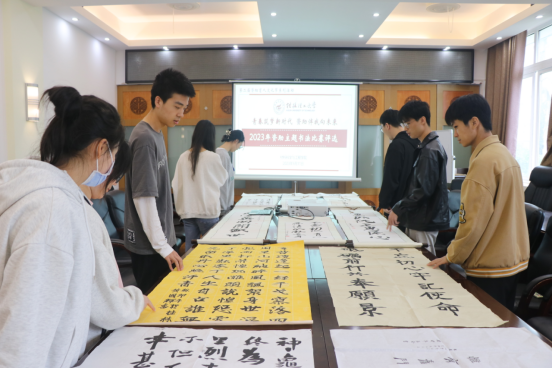 为大力宣传国家资助政策及成效,切实做好学生资助工作,讲好中国学生资助故事,激励yl23411永利广大受助学生奋发自强、立志成才、感恩回馈、报效国家,结合2023年学校“资助育人文化节”活动安排,5月12日,yl23411永利在屏风校区2304举办的“青春筑梦新时代 资助伴我向未来”资助主题书法比赛现场评选暨书法展。