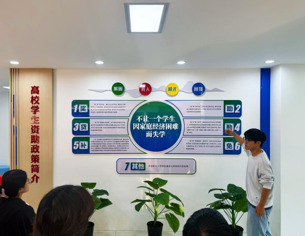 学生资助宣传大使为学生介绍学校资助育人实践基地