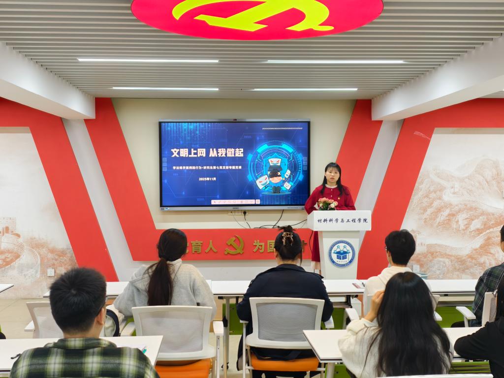 活动周期间,学院精心策划并开展了四项主题活动。启动“网络文明点亮行动”,利用教学楼宣传屏滚动播放网络安全标语,累计覆盖师生1500余人次;举办网络安全知识竞赛,共计1100余名学生积极参与;面向本科生和研究生开展分层分类专题教育,覆盖全院2500余名学生;组织全院14个师生党支部开展“学法规·学案例·践言行”主题党日活动,强化师生党员的示范引领作用。