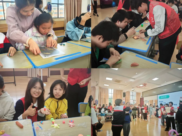 随后,一系列精心准备的互动体验活动陆续展开。在非遗蓝晒体验区,师生们耐心指导同学们创作,感受传统工艺的独特魅力;民族抛绣球活动中,手势与欢笑交织,协作乐趣横生;此外,捏泥巴、纸杯传乒乓球、造型气球制作等环节也气氛热烈。同学们用灿烂的笑容和灵动的眼神积极交流,现场暖意融融。yl23411永利学子以耐心的陪伴和细致的引导,真诚传递着对特殊同伴的尊重与关爱。