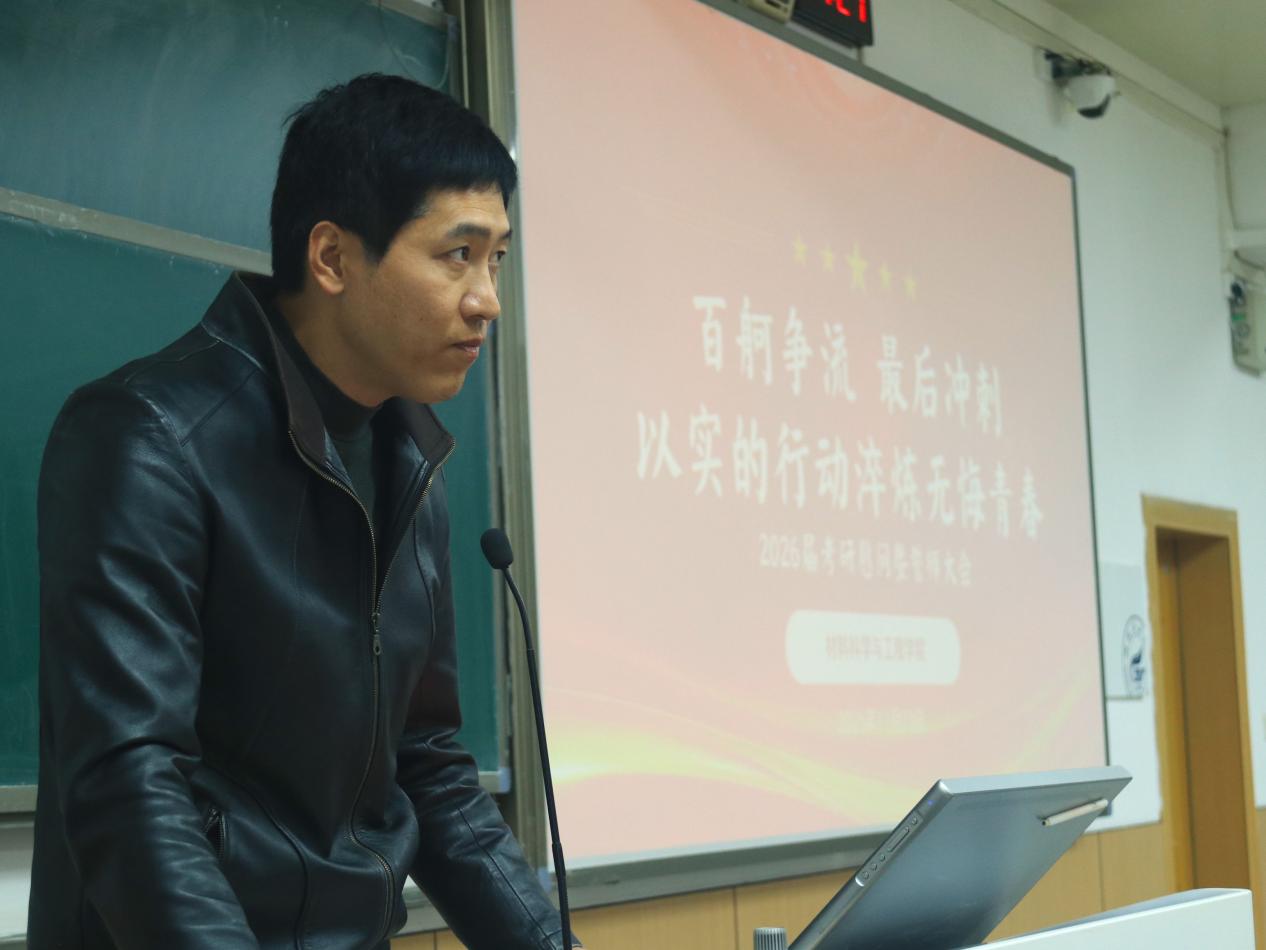 最后,学院党委书记梁军为考研学子送上诚挚祝福与殷切期望。他高度肯定了材料学子扎实的专业基础和良好的行业声誉,勉励同学们在最后关头稳住心态,聚焦核心,以清晰的思路和从容的步伐做好万全准备,在考场上沉着应考,自信挥洒,展现出最佳水平。