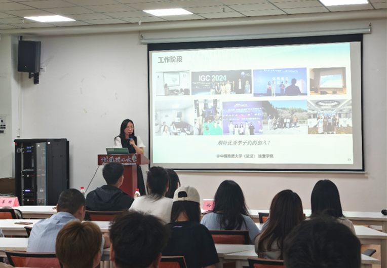 第二场报告由中国地质大学(武汉)珠宝学院宝石系主任李妍教授带来。作为伦敦大学材料科学博士、广州市及校级青年拔尖人才,李妍以“珠光筑梦,文化赋能,科艺创新”为题,全面介绍了地大武汉珠宝学院的研究生培养体系。她强调,学院以“科学+艺术+文化”为特色,依托国家重点实验室平台,在宝石材料设计、珠宝智能制造、传统文化数字化等领域形成跨学科优势,并展示了学院近年来的研究成果。针对研究生招生,李妍详细解读了学院优势研究方向,并特别提到:“我们热烈欢迎桂林理工大学有材料、地质学等学科背景的学生,尤其欢迎参与过科研训练的本科生和研究生来地大珠宝学院继续深造。”