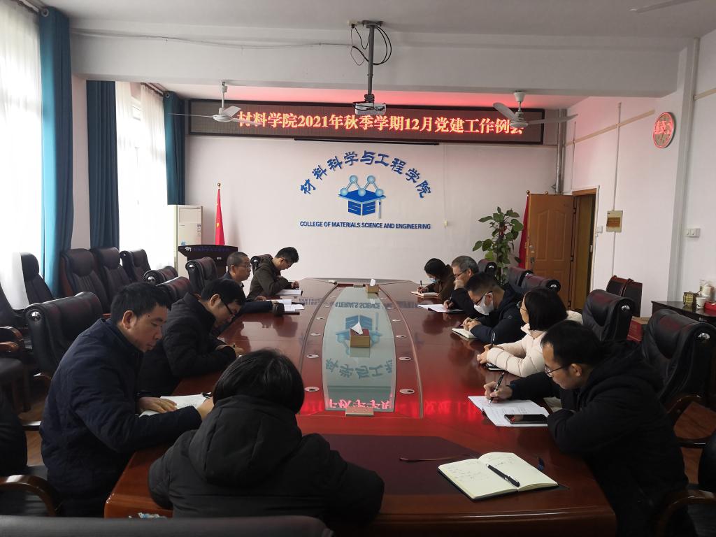 【党建月例会】学院召开2021年秋季学期12月党建工作例会1月4日上午,学院在2308会议室召开2021年秋季学期12月党建工作例会。学院党委书记梁军同志主持会议,学院党委委员、师生支部书记参加会议。会上,梁军同志传达了学校12月党建工作例会的内容及其要求,并结合学院实际,就学院2021年度党支部书记抓基层党建工作述职评议考核工作、2021年度党员领导干部民主生活会等工作进行了部署。梁军同志领学了《桂林理工大学党员组织关系管理办法》、《推进在低年级大学生中发展党员工作的若...2022-01-04 -