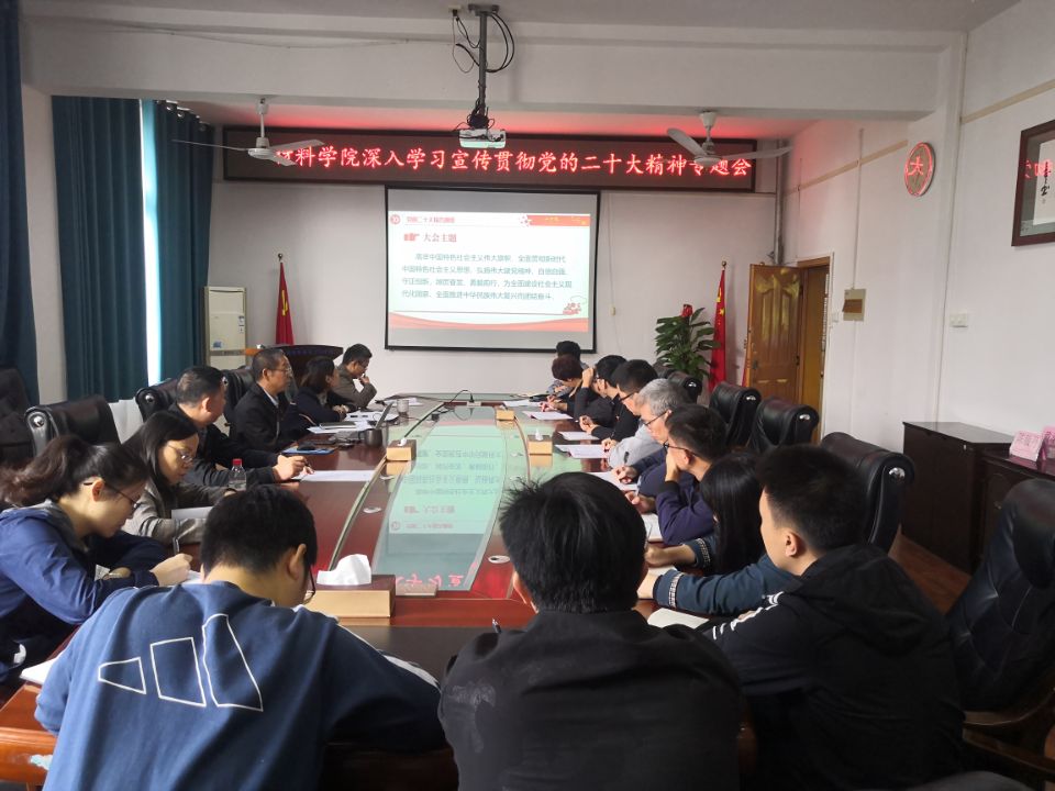 【学习贯彻党的二十大精神】学院党委中心组(扩大)理论学习会暨深入学习宣传贯彻党的二十大精神专题学习会为深入学习贯彻习近平新时代中国特色社会主义思想和党的二十大精神,深刻领悟“两个确立”的决定性意义,增强“四个意识”、坚定“四个自信”、做到“两个维护”。10月31日上午,学院在2308会议室召开党委中心组(扩大)理论学习会暨深入学习宣传贯彻党的二十大精神专题学习会。会议由学院党委书记梁军主持,学院全体党委委员、党支部书记和党政办主任参会。会上,梁军同志从大会主题、三个务必、十年来三件大事、党的中心任务...2022-10-31 -