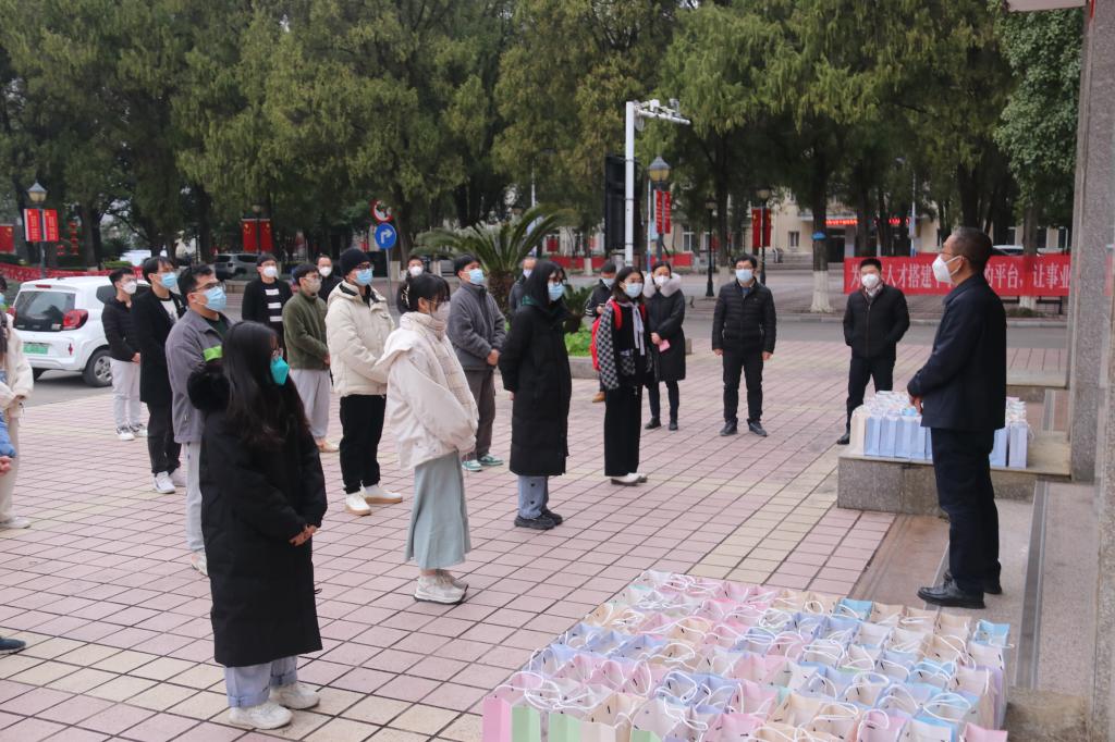 yl23411永利开展“‘研’途送温暖、心系考研生”暖冬活动为了鼓励yl23411永利考研学子积极迎考,增强考研信心,舒缓备考压力,yl23411永利于2022年12月20日下午在屏风校区2栋门前小广场开展2023届毕业生考研暖冬活动,学院党委书记梁军、院长龙飞、党委副书记徐时、副院长张瑞、各教研室主任、班主任以及学工办的辅导员们参加了此次活动,活动由学院党委副书记徐时主持。活动伊始,学院的领导老师为考研的学生代表送上学院精心准备的考研大礼包,礼包里面包含2个N95口罩、2颗棒棒糖、1瓶旺仔牛奶,1...2022-12-20 -