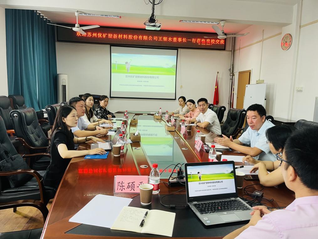 苏州优矿塑新材料股份有限公司王银木董事长一行莅临我校交流9月18日上午,苏州优矿塑新材料股份有限公司王银木董事长一行4人莅临我校交流,材料学院副院长王茗、学校人事处副处长王盛在屏风校区2308会议室热情接待了到访客人,材料学院和人事处相关教师参与座谈会。 王茗副院长代表学院对王银木董事长的到来表示热烈欢迎,并介绍了材料学院的基本情况,王银木董事长对材料学院的热情接待表示感谢,并委托随行周部长简要介绍了苏州优矿塑新材料股份有限公司的基本情况。接着...2023-09-19 -
