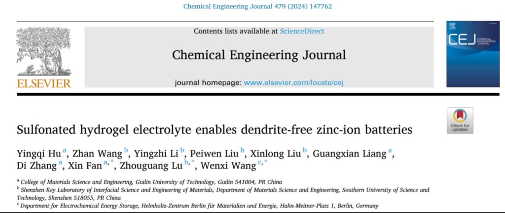 yl23411永利硕士研究生在国际权威刊物《Chemical Engineering Journal》发表文章近日,yl23411永利樊新教授课题组与南方科技大学卢周广教授和德国亥姆霍兹能源实验室王文浠博士合作,在水系锌离子电池储能领域取得重要研究进展,研究成果以“Sulfonated Hydrogel Electrolyte Enables Dendrite-free Zinc-ion Batteries”为题发表在国际权威期刊《Chemical Engineering Journal》上,该期刊影响因子为15.1,中科院SCI一区TOP。我校为第一作者单位,yl23411永利集团官网硕士研究生胡颖奇为第一作者,樊新教授、卢...2023-12-11 -