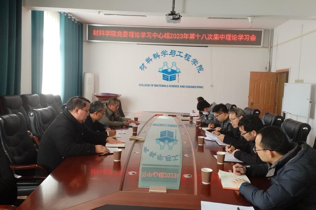 材料学院党委理论学习中心组2023年第十八次集中理论学习会为深入学习贯彻习近平新时代中国特色社会主义思想和党的二十大精神,接续在学懂弄通做实上下功夫,真正做到内化于心、外化于行,筑牢学院高质量发展思想根基和政治保障。12月29日下午,学院党委理论学习中心组在2308会议室学习贯彻习近平总书记对宣传思想文化工作作出的重要指示和全国宣传思想文化工作会议精神、习近平总书记2023年7月17日在全国生态环境保护大会上的讲话精神和习近平总书记12月14日至15日在广西考察作出的重要...2023-12-29 -